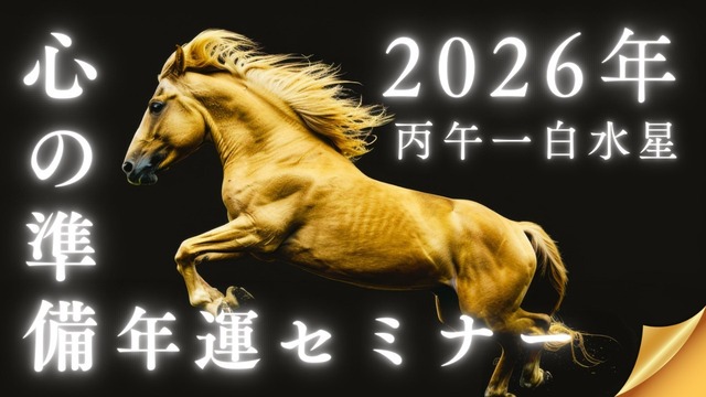 2026年運 心の準備セミナー チケット 12:00開催 8,800円薬膳ランチ付き 3時間くらいのセミナーとなります 12:00 2026年全体の流れ 13:00 ランチ 14:00 各星の運勢 一年の流れを先読みし、心と行動の準備を整える「年運セミナー」を開催します。 2026年は、十干十二支では「丙午(ひのえうま)」の年。大きな転換期となるこの年のエネルギーをどう生かすかで、未来の可能性は大きく変わります。 九星気学の視点から、それぞれの星が受け取る運気の特徴やチャンス・注意点を読み解き、日常生活や仕事、人間関係にどう活かすかをわかりやすく解説します。 運気は、ただ「当たる・外れる」ものではありません。 知って、備えて、動くことで、人生は確実に前に進み始めます。 新しい一年を、自分らしく、そして力強く歩むための道しるべを一緒に整えていきましょう。 【こんな方におすすめです】 ・来年のチャンスと課題を具体的に知りたい ・人生の方向性や計画を立てるヒントがほしい ・運の波を味方にして大きく飛躍したい 【講座内容】 ・2026年の全体運と社会の流れ ・九星別の年運解説(恋愛・仕事・健康・人間関係など) ・行動を起こすタイミングと避けるべき時期 ・運を味方につける生活の整え方 新しい年を、自分の力で切り拓く一歩として、ぜひご参加ください。